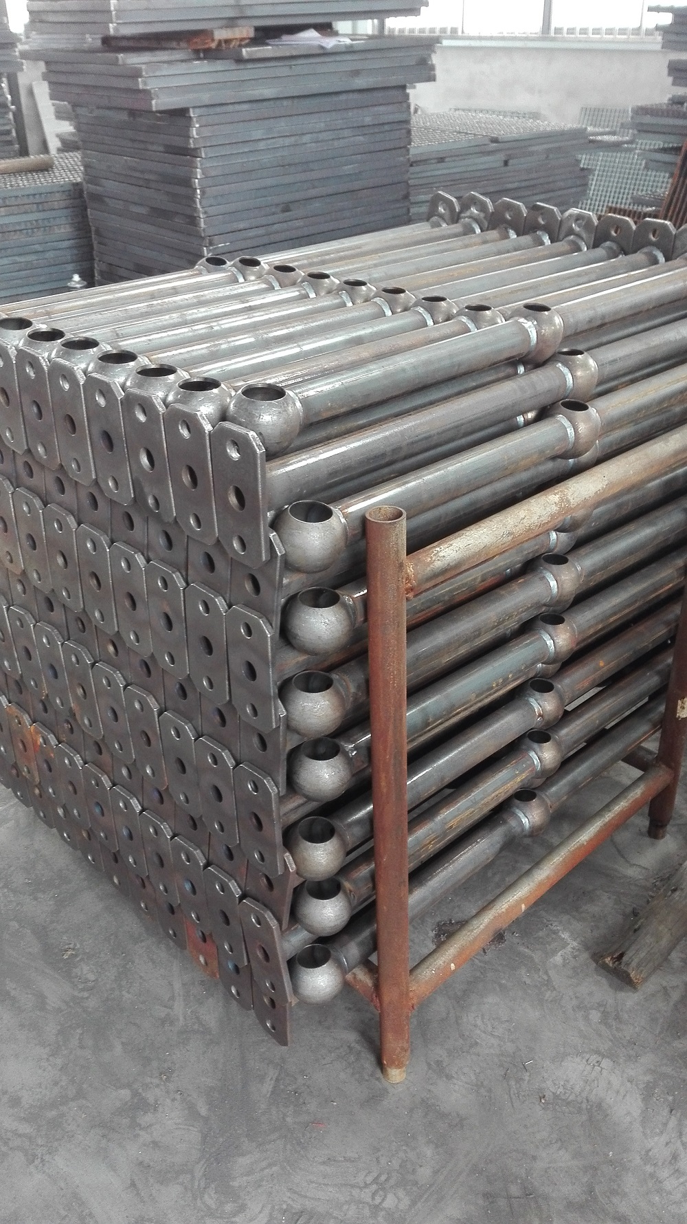 3)、穿入欄桿管件至第一根立柱半個球位,其余部分懸空。